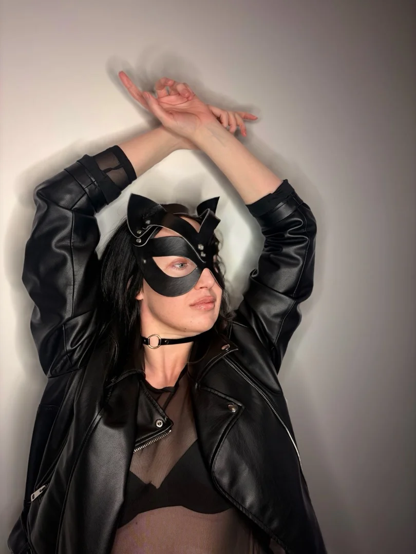 I look sweet… until I decide not to be. Black leather, bare skin underneath, and a mask just to make you wonder what I’ll do next. I enjoy tension, teasing, and making a man lose focus with just a look.